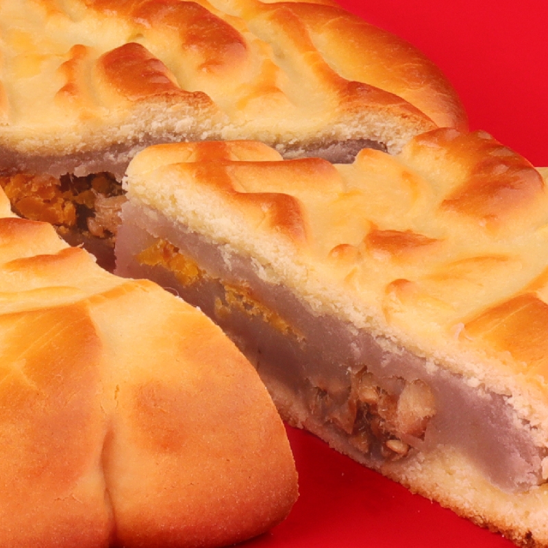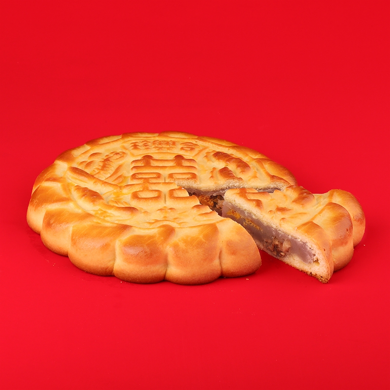 成分:麵粉、奶水、酥油、糖、雞蛋、芋頭餡、豬後腿肉、鹹蛋黃淨重:16兩(600公克)產地:臺灣