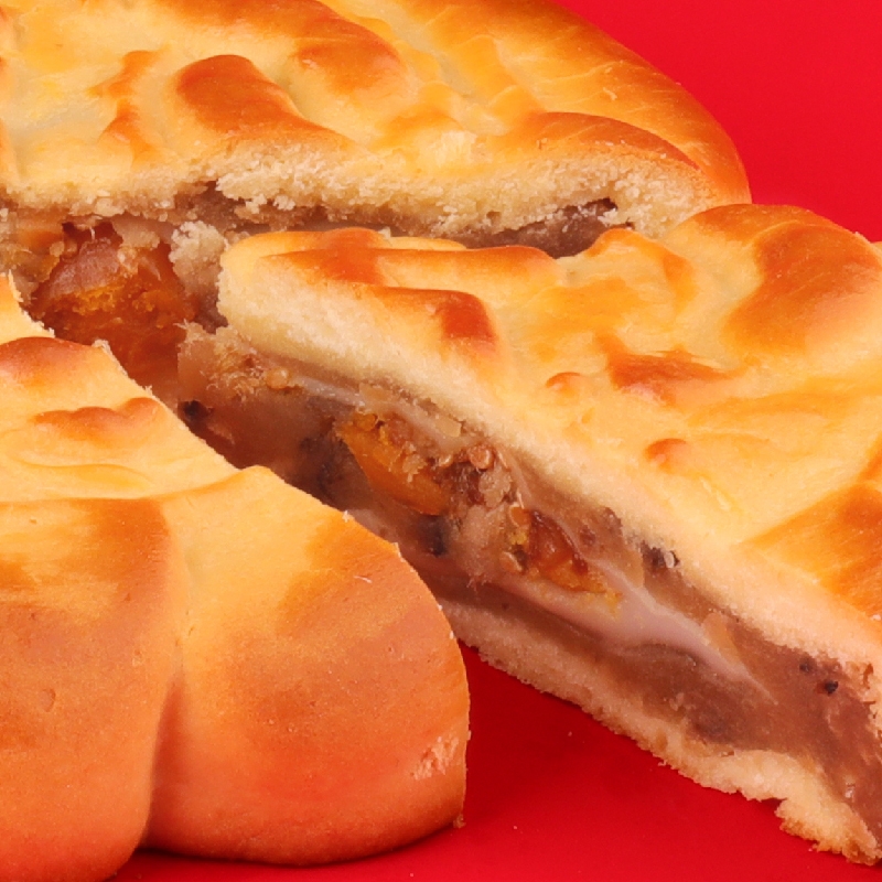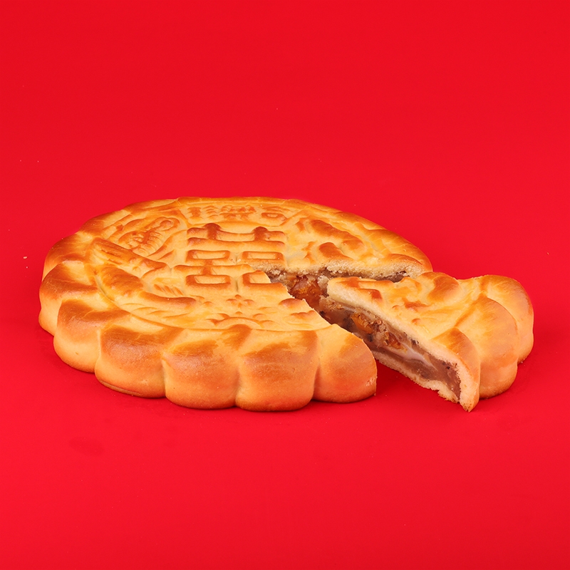 成分:麵粉、奶水、酥油、糖、雞蛋、香菇豆沙、豬後腿肉、麻糬、鹹蛋黃淨重:16兩(600公克)產地:臺灣